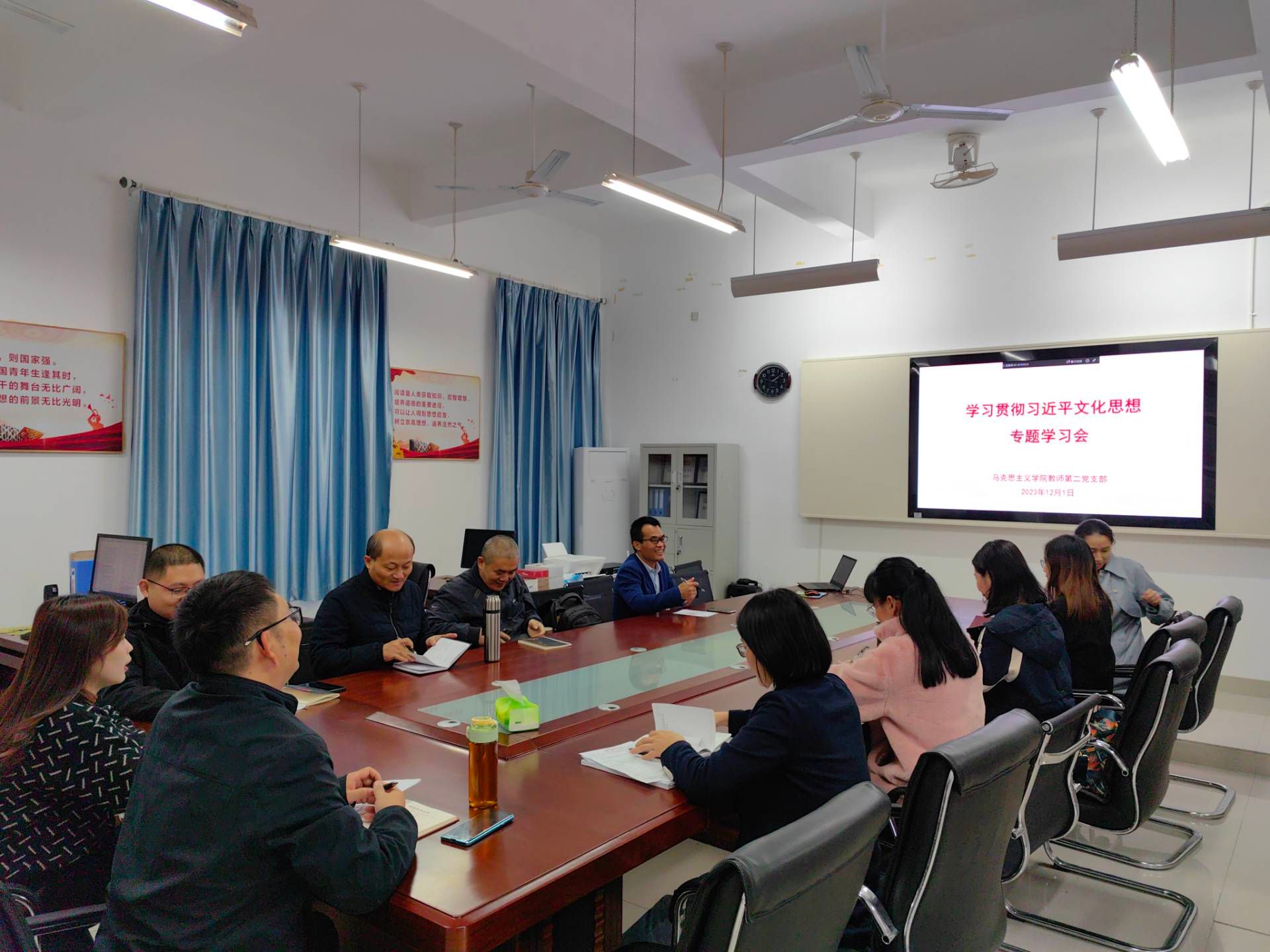 与会同志们表示,通过学习,进一步认识到思想文化工作事关党的前途命运,事关国家长治久安,事关民族凝聚力和向心力,是一项重要的工作。新时代新征程,作为思想政治理论课教师,面临了新形势新任务,应该为推动文化繁荣、建设文化强国、建设中华民族现代文明作出自己的贡献。