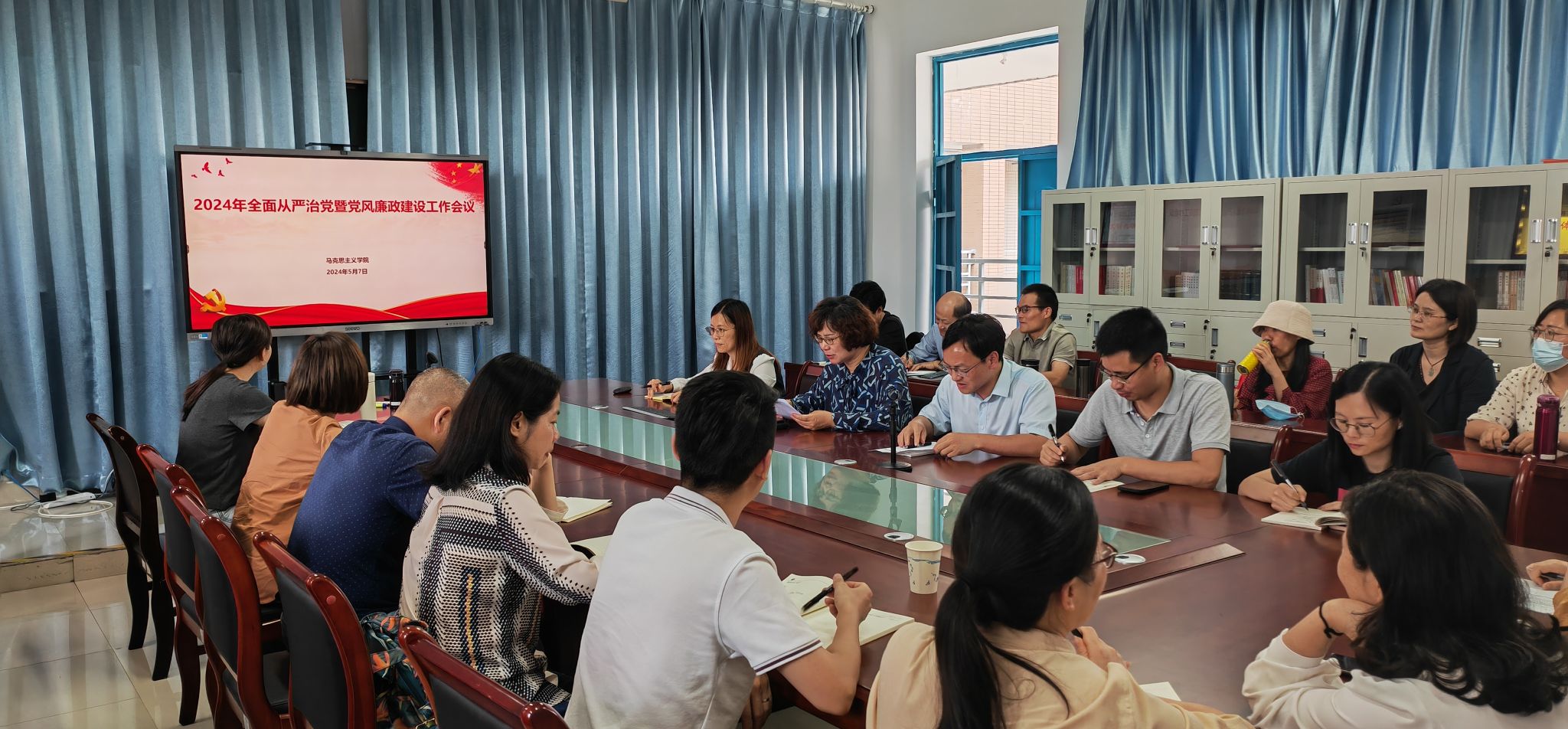 5月7日下午,世俱杯sjb官网在诚信楼514会议室召开2024年全面从严治党暨党风廉政建设工作会议,学院全体党员参加,会议由学院党委书记林萍主持。