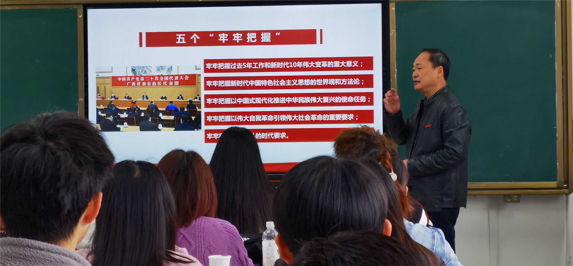 周训胜书记的授课深入浅出、条理清晰,既有深刻的理论又有丰富的案例和详实的数据,深受同学们欢迎。同学们纷纷表示,在今后的学习生活中,要坚定不移听党话、跟党走,立志做有理想、敢担当、能吃苦、肯奋斗的新时代好青年,不负时代,不负韶华,让青春在全面建设社会主义现代化国家的火热实践中绽放绚丽之花。