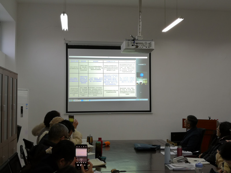 王刚教授以《推进党的十九届六中全会< 决议>精神进思政课堂的思考》为题,从《决议》中哪些内容融入课堂、《决议》内容融入哪些课程、怎样把《决议》精神融入思政课三个方面展开线上指导。王刚教授指出,推进党的十九届六中全会精神进课堂的基本前提是必须明确《决议》的重要定位、重大意义,准确把握党的百年奋斗重大成就、历史经验以及新时代中国共产党的使命等一系列基本问题,提升理论认同与行动自觉。王刚教授重点讲解了“党的十九届六中全会为什么要通过第三个历史决议”、“如何理解马克思主义中国化的三次飞跃”、“党的百年奋斗为什么深刻影响了世界历史进程”等八个问题,强调思政课教师要把这八个问题讲清楚,推动全会精神融入思政课,特别是《形势与政策》、《毛泽东思想和中国特色社会主义理论体系概论》等课程应重点融入。王刚教授认为《决议》内容丰富,不同课程应依据教学内容有机融入,处理好教材与《决议》的关系,避免生搬硬套,及时评估融入效果。讲座结束后,学院各教研室又进一步围绕全会精神如何融入思政课进行深入研讨。