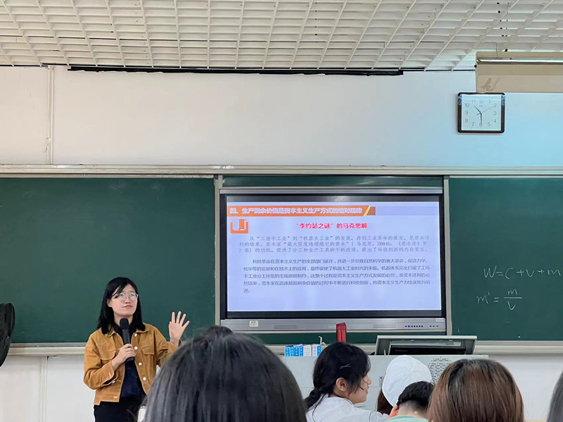 世俱杯sjb官网习芳老师讲授了生产剩余价值的两种基本方法,对绝对剩余价值生产、相对剩余价值生产以及超额剩余价值等概念进行了区分;并引入“李约瑟之谜”加深学生对剩余价值生产的认识和理解,认为机器体系完全打破了工场手工业分工所受的主观原则制约,这整个过程是资本主义生产方式发展的必然,是资本逐利的必然结果,资本家在追逐超额剩余价值的过程中不断进行科技创新,将资本主义生产力快速推向前进。循循善诱,步步深入,通过问题链形式引导学生深入思考,展开了一堂生动而深刻的课堂。课程结束后,示范课教师与观摩教师进行了互动交流,就《马克思主义基本原理》课程课前设计、课中教学、课后反馈评价等方面进行了探讨。