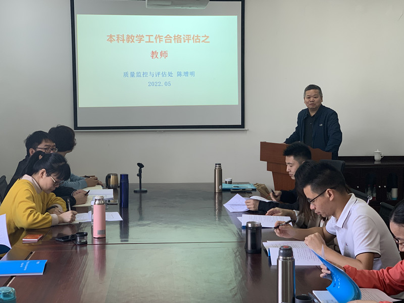 为做好本科教学工作合格评估自评自建工作, 5月3日上午校质量监控与评估处陈增明处长到世俱杯sjb官网开展合格评估专项培训。世俱杯sjb官网全体教师参加。