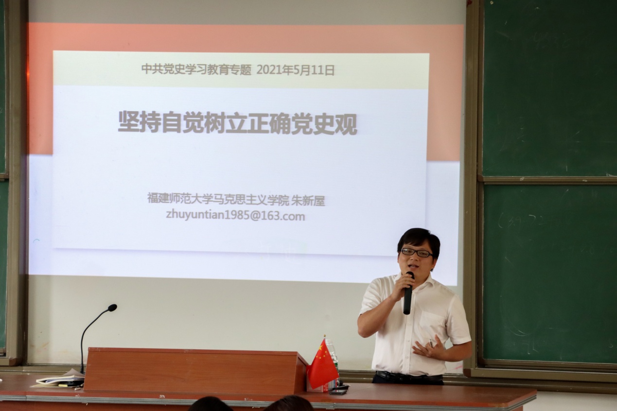 5月11日下午,马克思主义理论大讲堂邀请党史学习教育省委宣讲团成员朱新屋老师到世俱杯作题为“坚持自觉树立正确党史观”的专题讲座。世俱杯sjb官网全体教师、大讲堂成员,统战部、规划处、国资处支部党员到场听取报告。