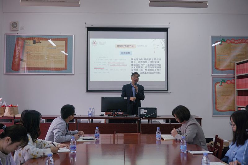为认真学习贯彻落实习近平总书记在党史学习教育动员大会上的重要讲话精神,推动学校师生深入学好党史、新中国史、改革开放史、社会主义发展史,3月13日上午,闽南师范大学世俱杯sjb官网院长陈再生教授应邀莅临世俱杯开展题为“跟随大会学党史”的专题讲座。世俱杯sjb官网部分教师以及校习近平新时代中国特色社会主义思想读书社社员聆听了讲座。