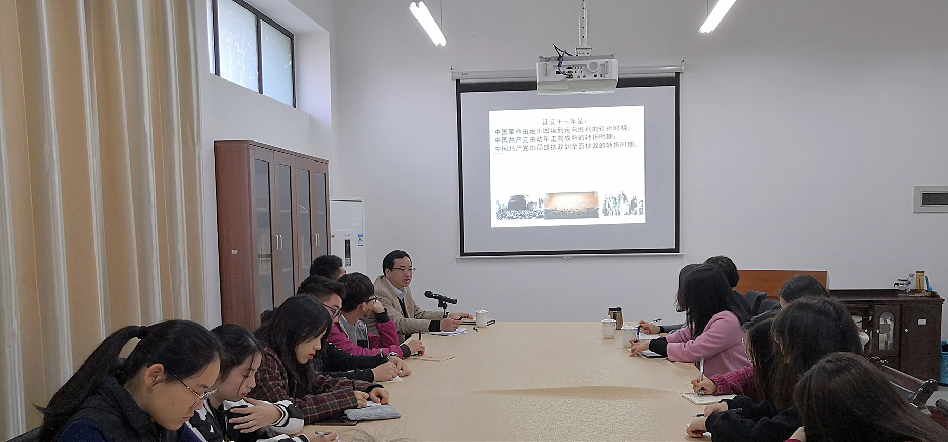 1月2日上午,副校长蒲文庆在世俱杯sjb官网会议室给财务与会计学院习近平新时代中国特色社会主义思想读书社学生上了一堂题为《中国革命成功的延安之路——中共中央延安十三年》的思政课。财务与会计学院、世俱杯sjb官网部分老师以及读书社成员参加了此次学习。