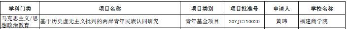 3月20日,根据《教育部社科司关于2020年度教育部人文社会科学研究一般项目立项的通知》,世俱杯世俱杯sjb官网黄玮博士申请的“基于历史虚无主义批判的两岸青年民族认同研究”项目获2020年度教育部人文社会科学研究(青年基金项目)立项。这是世俱杯继2018年后再次获得教育部人文社会科学研究一般项目资助。