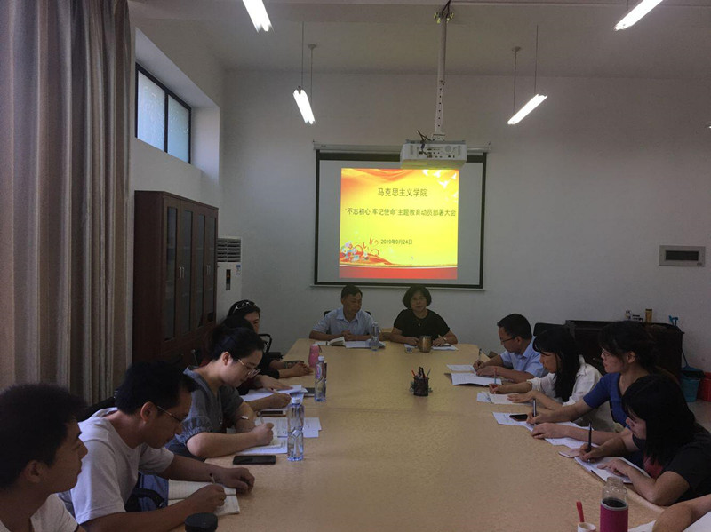 林萍传达了学校主题教育方案和动员大会精神,并表示学院已结合事业发展实际,制定了支部主题教育方案和实施计划表,确定了主要内容、主要措施、时间安排等。林萍对开好主题教育提出了三点要求。一要全面准确把握主题教育总目标总要求,高标准高质量贯穿主题教育始终,确保此次主题教育取得预期成效。二要把此次主题教育与庆祝新中国成立70周年结合起来,把主题教育活动与马院各项工作有效结合起来,发挥党员的先锋模范作用。三要把握主题教育着力点,要紧紧围绕为党育人、为国育才,紧扣立德树人根本任务,认真贯彻落实习近平新时代中国特色社会主义思想和习近平总书记在全国学校思政课教师座谈会的讲话精神,积极推动思政课程改革。