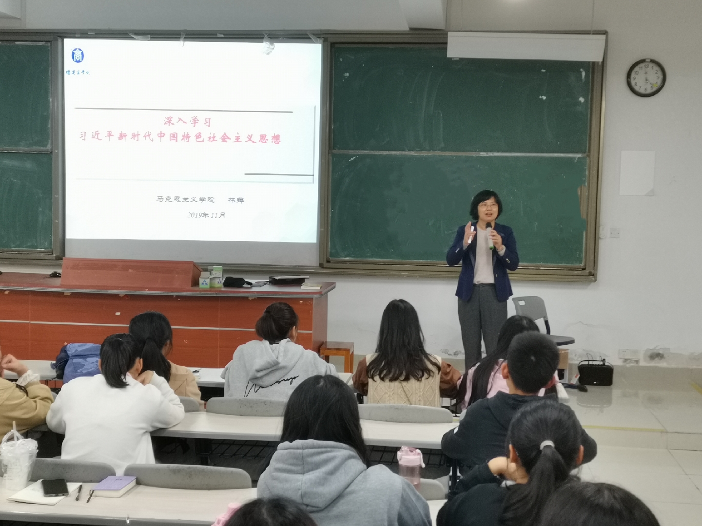林萍教授从历史与现实、国际与国内出发,多维度地对习近平新时代中国特色社会主义思想进行了解读,提升了广大师生对这一新思想的感知度与认同感。他们纷纷表示今后要深入学习习近平新时代中国特色社会主义思想,紧跟时代步伐,关注国情,共同助力中华民族伟大复兴的实现!