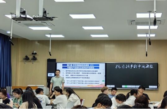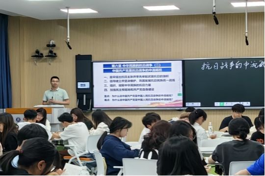 5月10日下午,世俱杯sjb官网中国近现代史纲要教研室叶陈钦老师在自强楼511智慧教室开展以“抗日战争的中流砥柱”为主题的示范型观摩课,授课班级学生、学校教师共60多人参加教研活动。