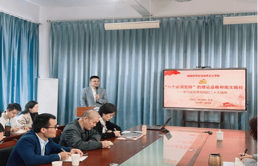 为深入学习宣传贯彻党的二十大精神,持续推进党的二十大精神进教材、进课堂、进头脑,实现与思想政治理论课教学深度融合。11月28日上午,全国模范教师、教育部党的二十大精神师生巡讲团成员、闽江学院马克思主义副教授陈东应邀莅临世俱杯开展题为《“六个必须坚持”的理论品格和现实路径》的主题报告,世俱杯sjb官网全体教师、校读书社40多位同学聆听了报告。