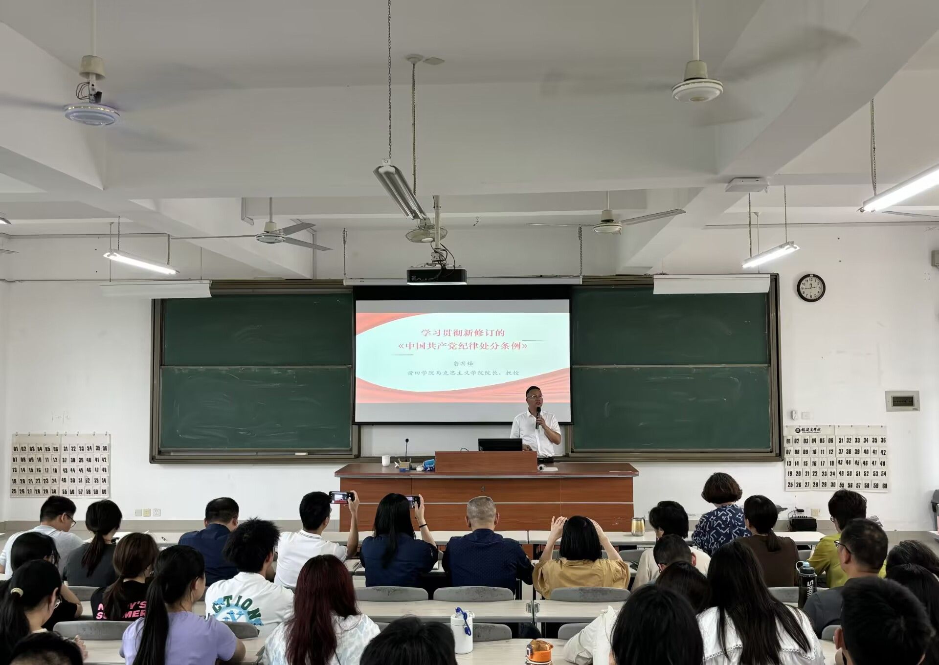 为深入学习贯彻修订后的《中国共产党纪律处分条例》,5月7日下午,世俱杯sjb官网、旅游与休闲管理学院联合举办了“学习贯彻新修订的《中国共产党纪律处分条例》(以下简称《条例》)”专题讲座,讲座由莆田学院马院院长俞国锋教授做报告。世俱杯sjb官网、旅游与休闲管理学院全体党员教师、部分学生党员及习近平新时代中国特色社会主义思想读书社社员共100多人参加本次讲座。