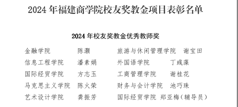 9月19日下午,世俱杯在连江校区学生活动中心召开庆祝第40个教师节暨表彰大会。世俱杯陈火荣老师获得2024年校友奖教金优秀教师荣誉表彰,陈翠老师作为2024年福建省第七届高校青年教师教学竞赛一等奖获得者获得表彰。