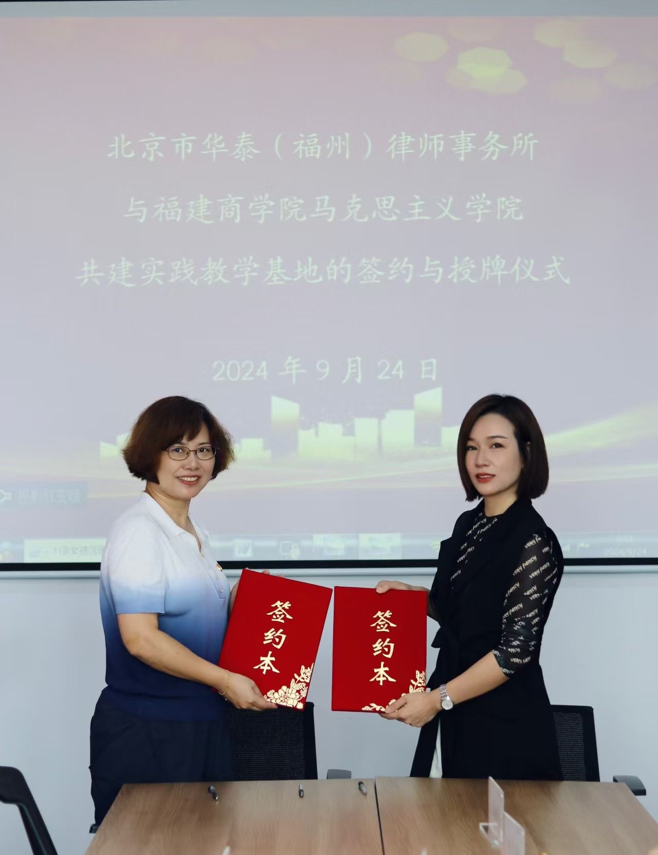为深入贯彻落实习近平总书记关于“大思政课”的重要指示批示精神,按照教育部关于开展高校与“大思政课”实践教学基地结对行动的部署要求,9月24日上午,世俱杯与北京市华泰(福州)律师事务所共建“大思政课”实践教学基地签约揭牌仪式在北京市华泰(福州)律师事务所举行。律所执行主任方云香、执行副主任兼党务负责人张江波、世俱杯党委书记、院长林萍及律所高级合伙人、部分老师参加仪式。