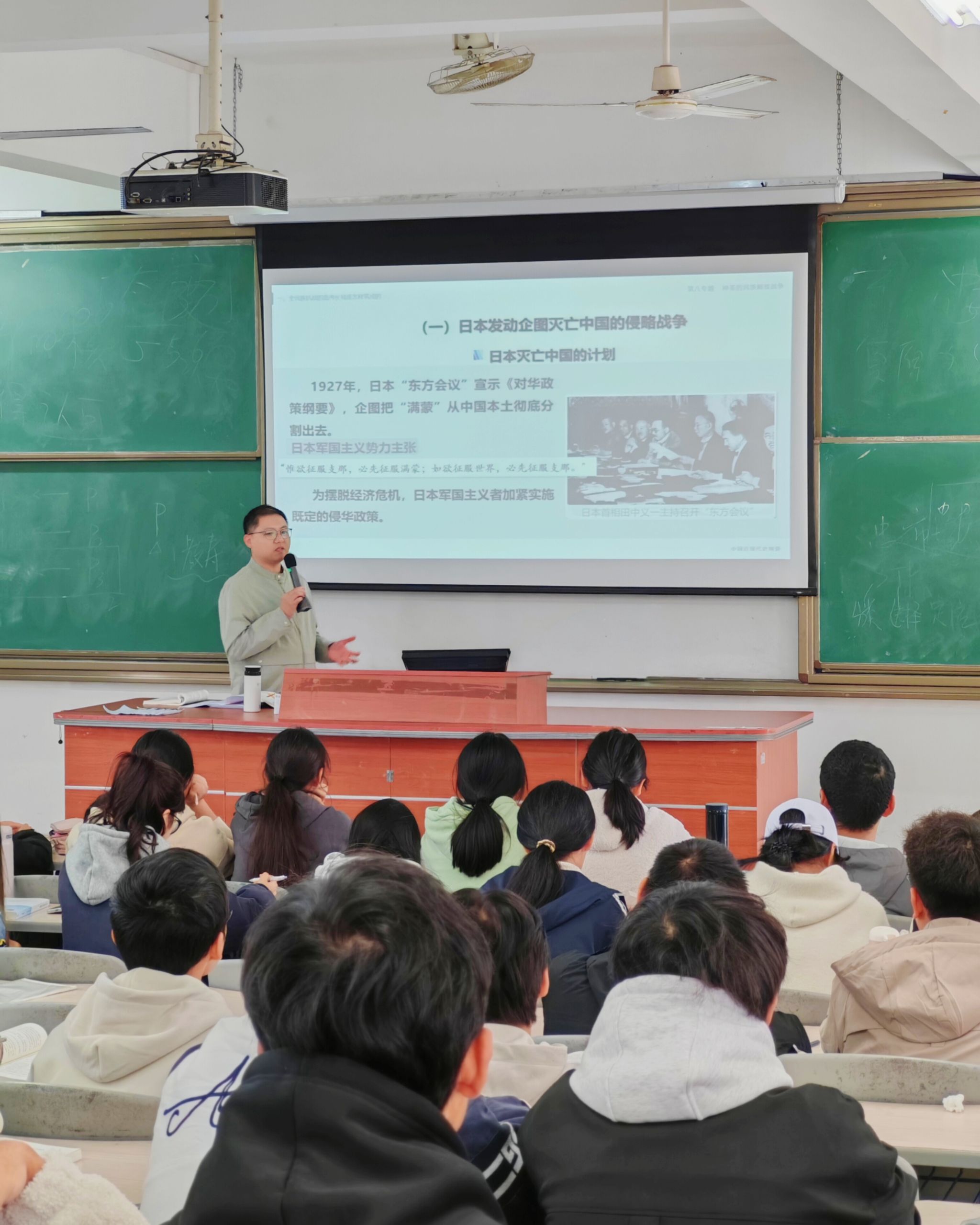 吴旭东老师以作曲家麦新所创作的抗日救亡歌曲《大刀进行曲》导入课程教学,集中讲授了全民族抗战血肉长城的筑成、对抗战中国民党及正面战场的作用的评价,启发学生思考在全民族神圣的抗日战争中谁才能最终领导中国人民取得抗日战争最后胜利。随后,吴老师重点讲授了中国共产党是中华民族抗日战争的中流砥柱,回答了这个关键性问题。在授课过程中,吴老师采用启发教学、案例教学等方法,通过丰富的史料,深入浅出的阐述,以理论联系实际,有力批驳了历史虚无主义,引导学生深刻领会了中国共产党是抗日战争的中流砥柱这一教学中的难点问题,教学内容充实,教学效果显著。