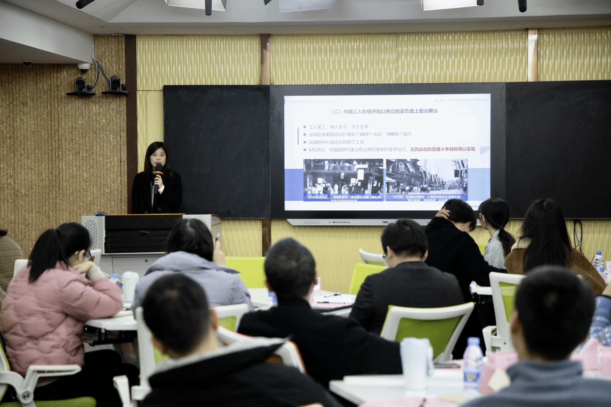 为贯彻落实习近平总书记对思政课建设的重要指示精神,深入推进思政课改革创新提质增效,2024年12月14日上午,由全国高校思政课“手拉手”集体备课中心(福建师范大学-福建)主办,福州外语外贸学院世俱杯sjb官网和李颖思政名师工作室联合承办“中国近现代史纲要”课程集体备课会在福州外语外贸学院召开。世俱杯中国近现代史纲要教研室教师参与了现场集体备课会。