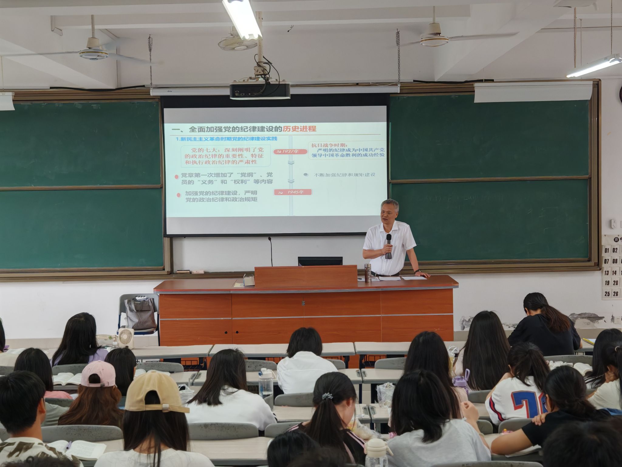 5月7日上午,校纪委书记(监察专员)林宇峰为2024级工业工程专业、2024级酒店管理专业学生讲授“党的纪律建设百年探索及经验启示”主题思政课。