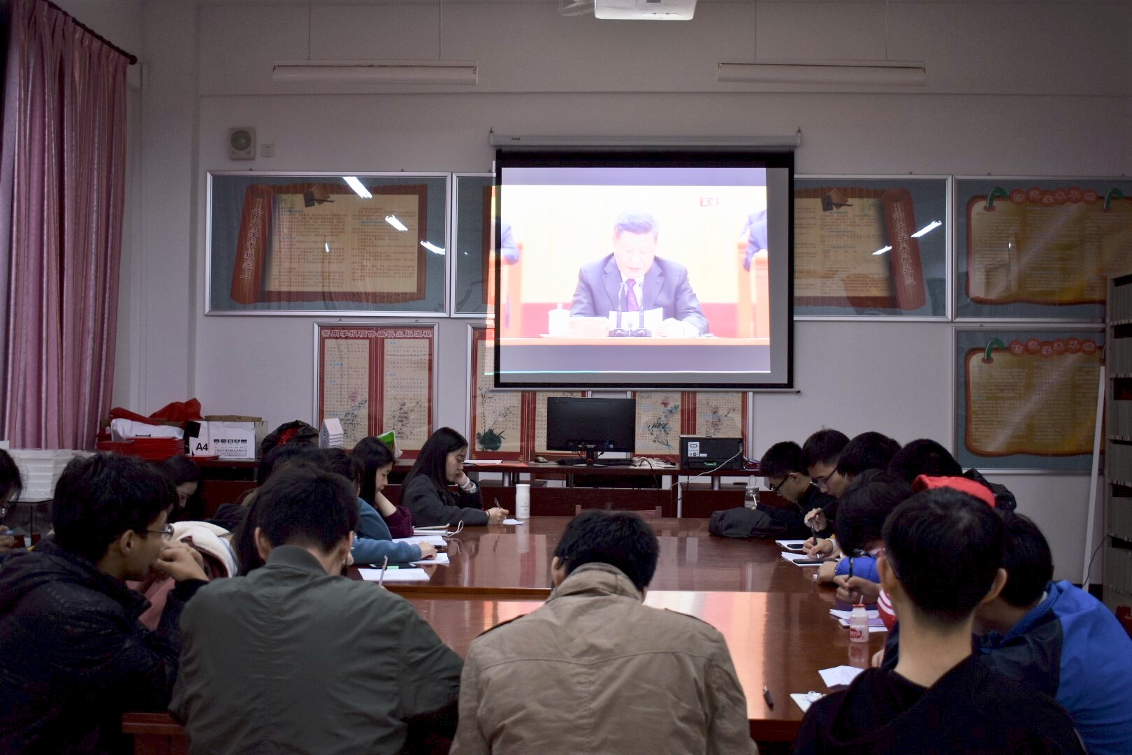 读书社师生认真学习听取大会精神