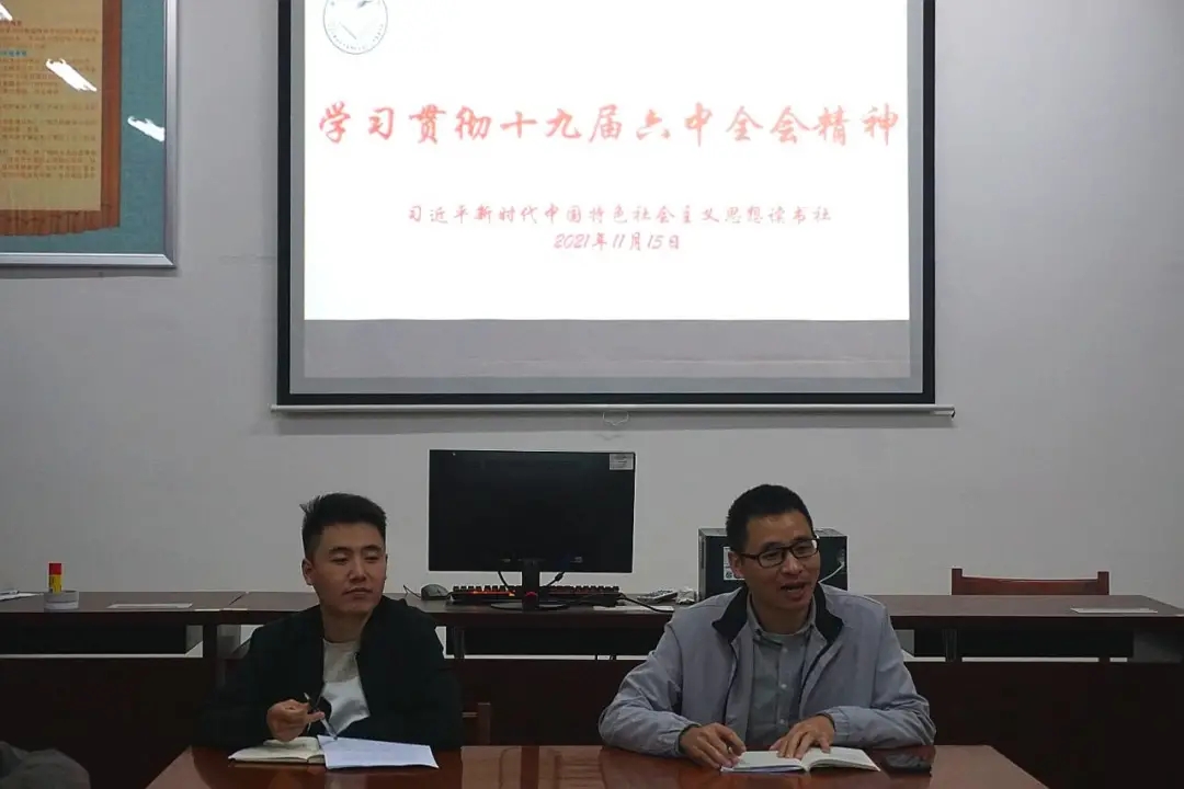 为进一步学习贯彻党的十九届六中全会精神,深入学习党的百年奋斗成就和历史经验,校习近平新时代中国特色社会主义思想读书社于2021年11月15日晚在连江校区自强楼114活动室开展十九届六中全会精神学习、交流活动。世俱杯sjb官网赵敏老师、林甦垚老师、叶陈钦老师及读书社部分社员参加学习。活动中,师生热议十九届六中全会精神。