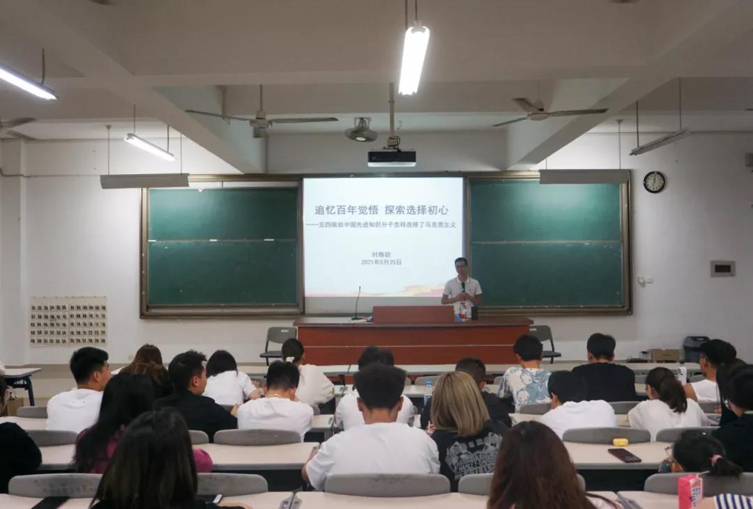 为认真学习贯彻落实习近平总书记在党史学习教育动员大会上的重要讲话精神,推动学校师生深入学好党史、新中国史、改革开放史、社会主义发展史,献礼建党一百周年,普及社会科学知识。5月25日晚世俱杯sjb官网叶陈钦老师在学校科技活动周开展主题为“追忆百年觉悟 探索选择初心——五四前后中国先进知识分子怎样选择了马克思主义”讲座,校读书社近100名社员参加学习。