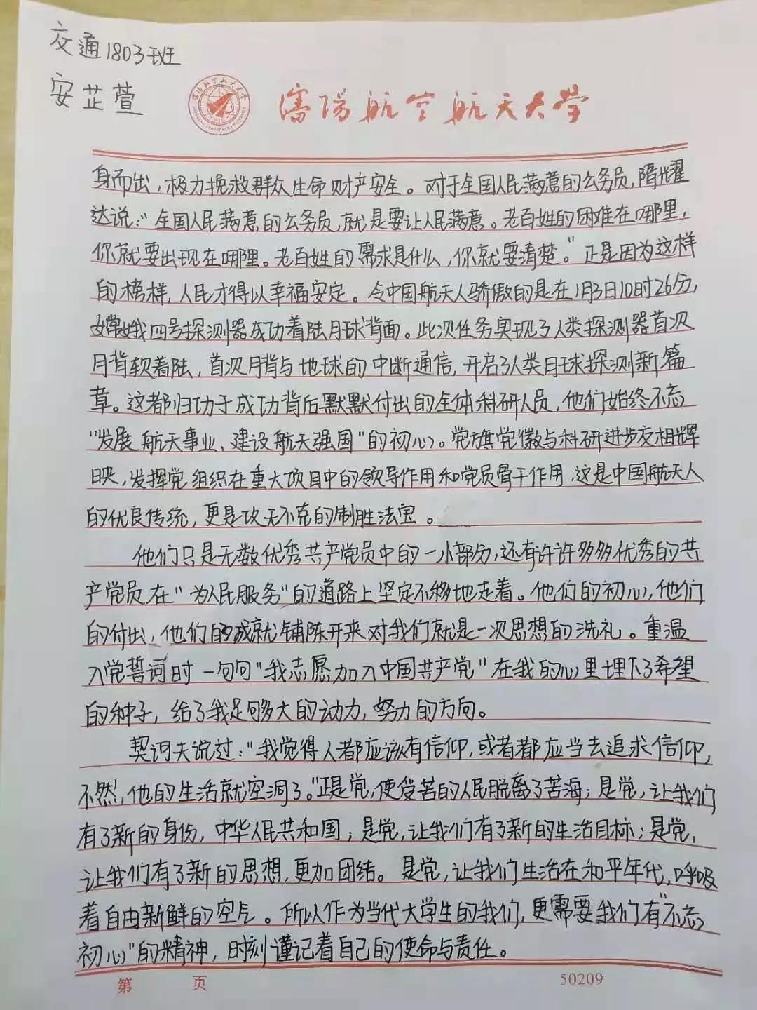 观影结束后,学生党员和积极分子在会后撰写了心得体会。