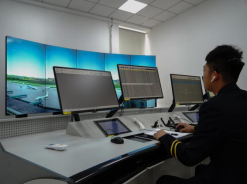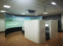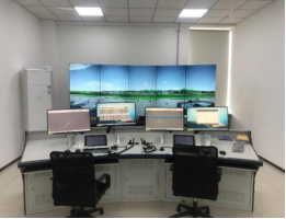 机场管制模拟实验室位于航宇馆243-1室,占地面积60余平方米,配备桌面式塔台模拟机一台,包括两个管制席位,两个飞行员席位及一个教员席位。主要承担交通运输专业、飞行技术专业陆空对话模拟训练、机场管制模拟训练等实践教学环节。该塔台模拟机以及附属的内话系统能够模拟包括塔台视景在内的机场管制场景和用户界面并构建起飞行员与管制员通讯平台。通过真实还原机场场景、周边空中交通状况及其他要素,为学生搭建了一个逼真的360°塔台视景训练平台。