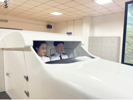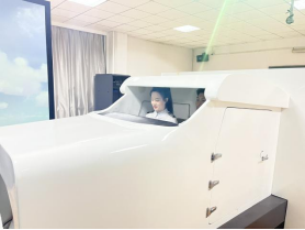 航空服务实训中心位于航宇馆106室,2020年9月建成并投入使用,占地面积440余平方米,设备总值400余万元。中心拥有空客A330飞机双通道模拟舱一架,全长16.81米、宽5.64米、高2.7米,按空客A330飞机1:1对应复制带机身舱段和驾驶舱的模拟设备,有效还原了真实的客舱,可用于学员熟悉飞机客舱布局、机载设备操作、餐饮服务、应急处置等专业的实践教学,是目前国内高校航空服务艺术与管理专业最先进的教学设施设备。